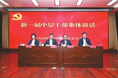 11月30日下午,我院召开全院干部大会暨新一届中层干部集体谈话会议。南通大学党委常委、副校长、我院党委书记施炜代表院党委与新一届中层干部进行集体谈话。院党委副书记、院长史加海主持会议。在院院领导出席会议。